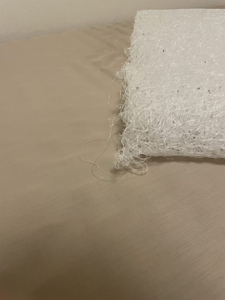 そのため枕本体のポリエチレン樹脂(網状構造)が見えます。
